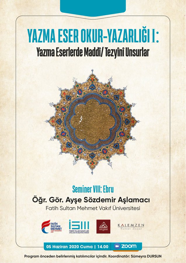 Yazma eserlerdeki maddî / tezyînî unsurlara odaklanan bu program FSMVÜ İslam Sanatları Uygulama ve Araştırma Merkezi (İSM) ve Kalemzen Kültür Sanat'ın sponsorluğunda 6 oturum olarak düzenlenmiştir.