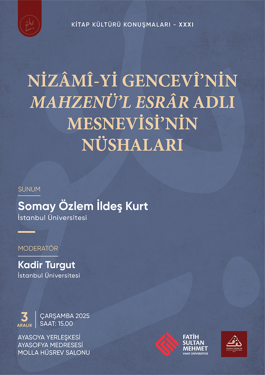 Kitap Kültürü Konuşmaları serisinin yirmi altıncısı Samet Budak tarafından "Tracing the Manuscripts from Mehmed II's Library and Scriptorium: A Preliminary Assessment" başlıklı sunumuyla 26 Mart Çarşamba günü gerçekleşecektir. Programın moderatörlüğünü ise Ertuğrul Ökten üstlenecektir.
